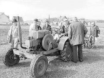 verschiedener Altersjahrgänge standen Neugierigen Rede und Antwort. Dicht umringt war dabei der alte Lanz aus den 30er Jahren. Nur wenig jünger waren der stahlblaue